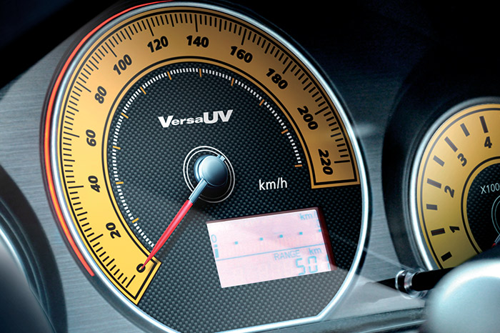 ECO-UV ink options include high-density white ink for greater brilliance on clear or dark-colored materials and Gloss ink for gloss and matte finishes. Multiple layers of clear ink can be applied to simulate embossing and 3D textures, and the included VersaWorks Dual RIP software comes with 72 ready-to-use texture patterns.